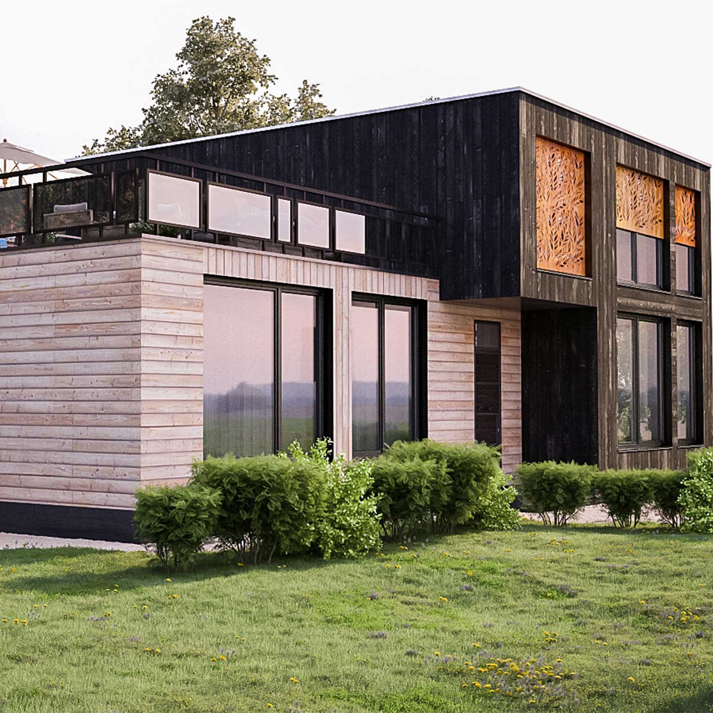 3д визуализации (несколько реалистичных перспективных видов здания в программе 3d моделирования)