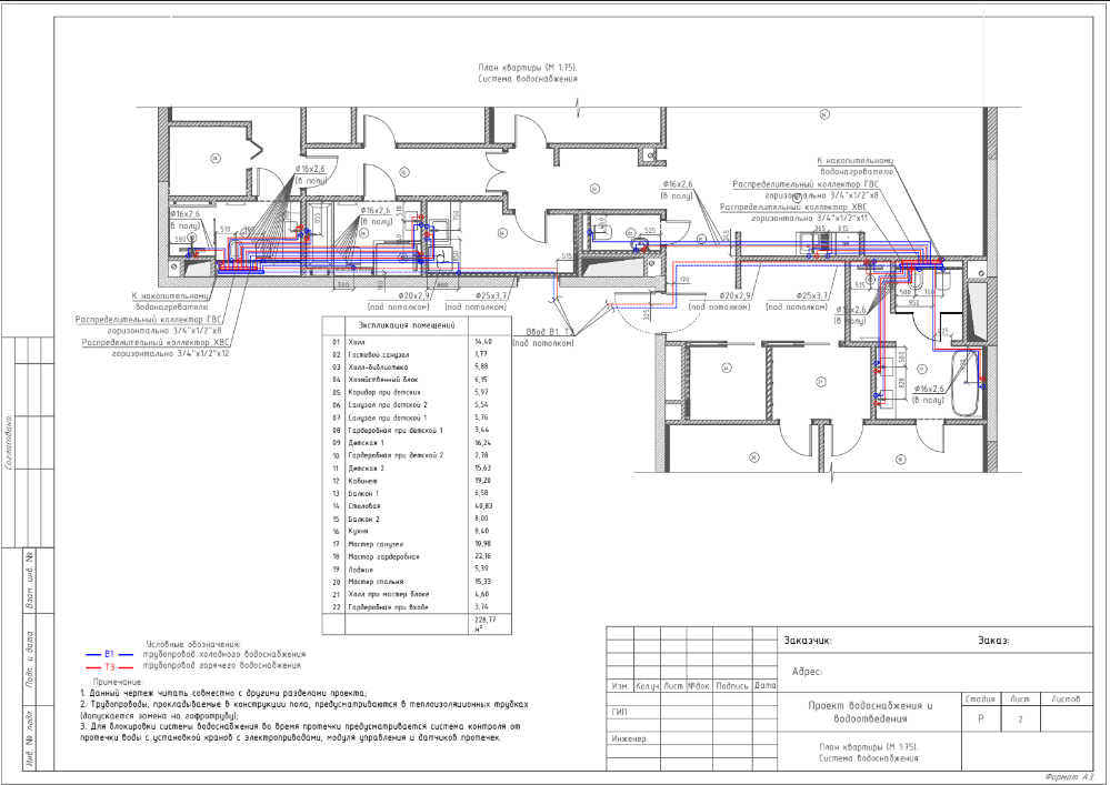 ВК – это проект водоснабжения и канализации, который необходим для обеспечения водой в необходимом количестве и отвода загрязненной воды по всем правилам и нормам. Специалисты правильно сделают техническое решение, расчет и подбор необходимого оборудования с учетом всех мелочей. Проект включает в себя текстовые материалы с общими сведениями и схемой подключения, а также графическую часть.